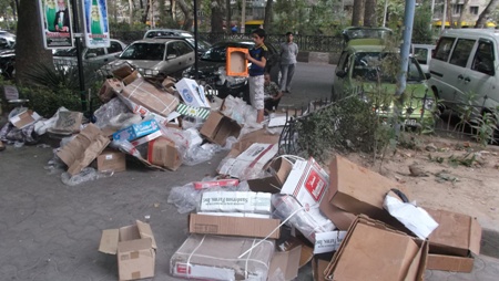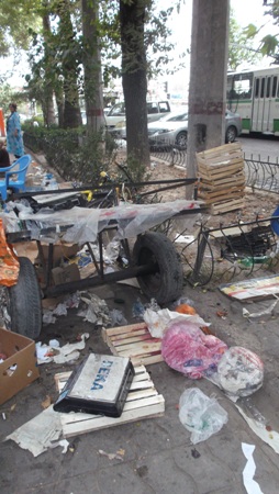 Жители домов рядом с оптово-розничными магазинами в районе Садбарга до сих пор в ужасе. Горы мусора остались после бойкой торговли перед праздником под их окнами.