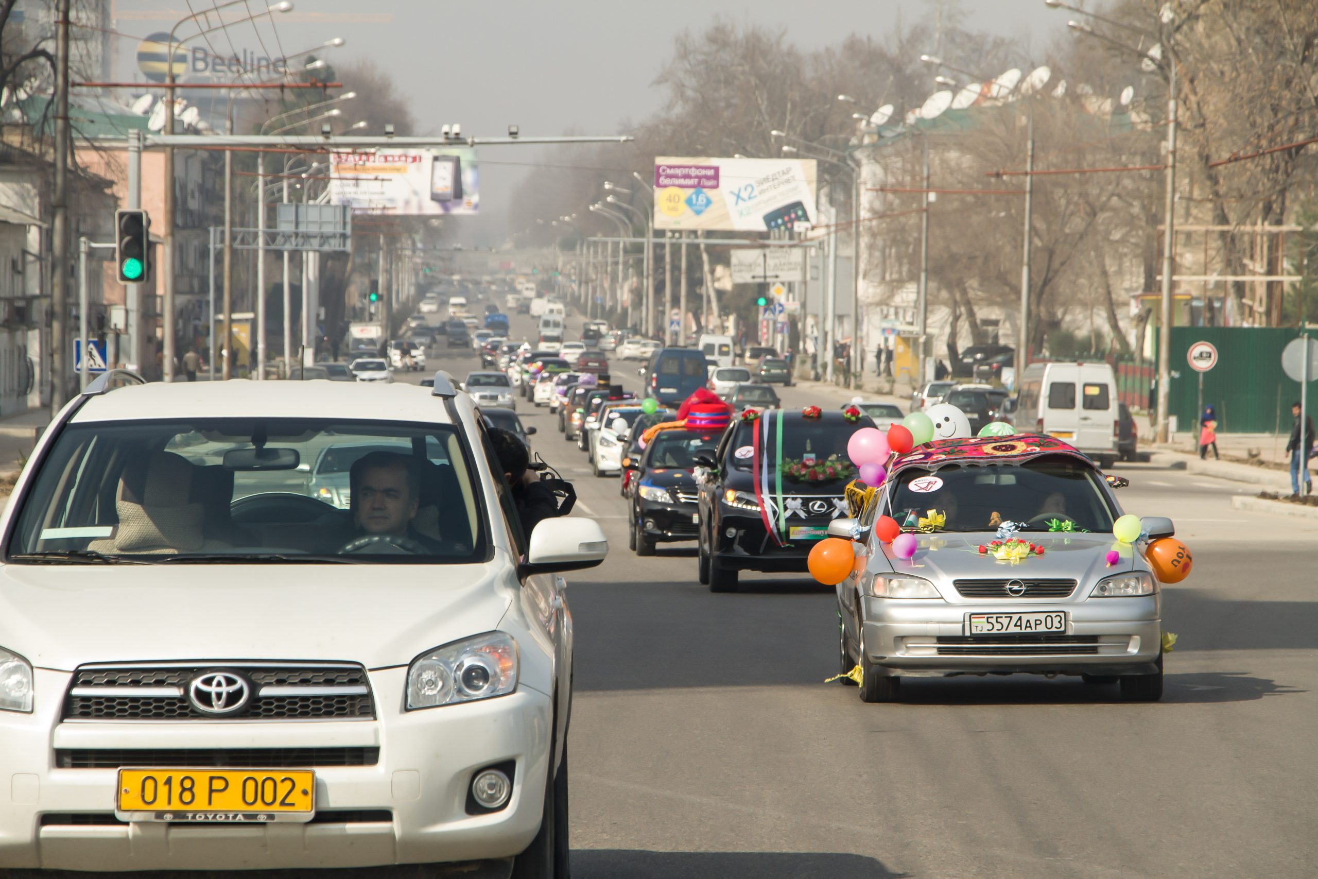 В 9 утра у столичного комплекса «Наврузгох» стали собираться украшенные авто участниц конкурса. Мимо проезжавшие машины недоумевали и были приятно удивлены, когда увидели авто с прекрасными леди.