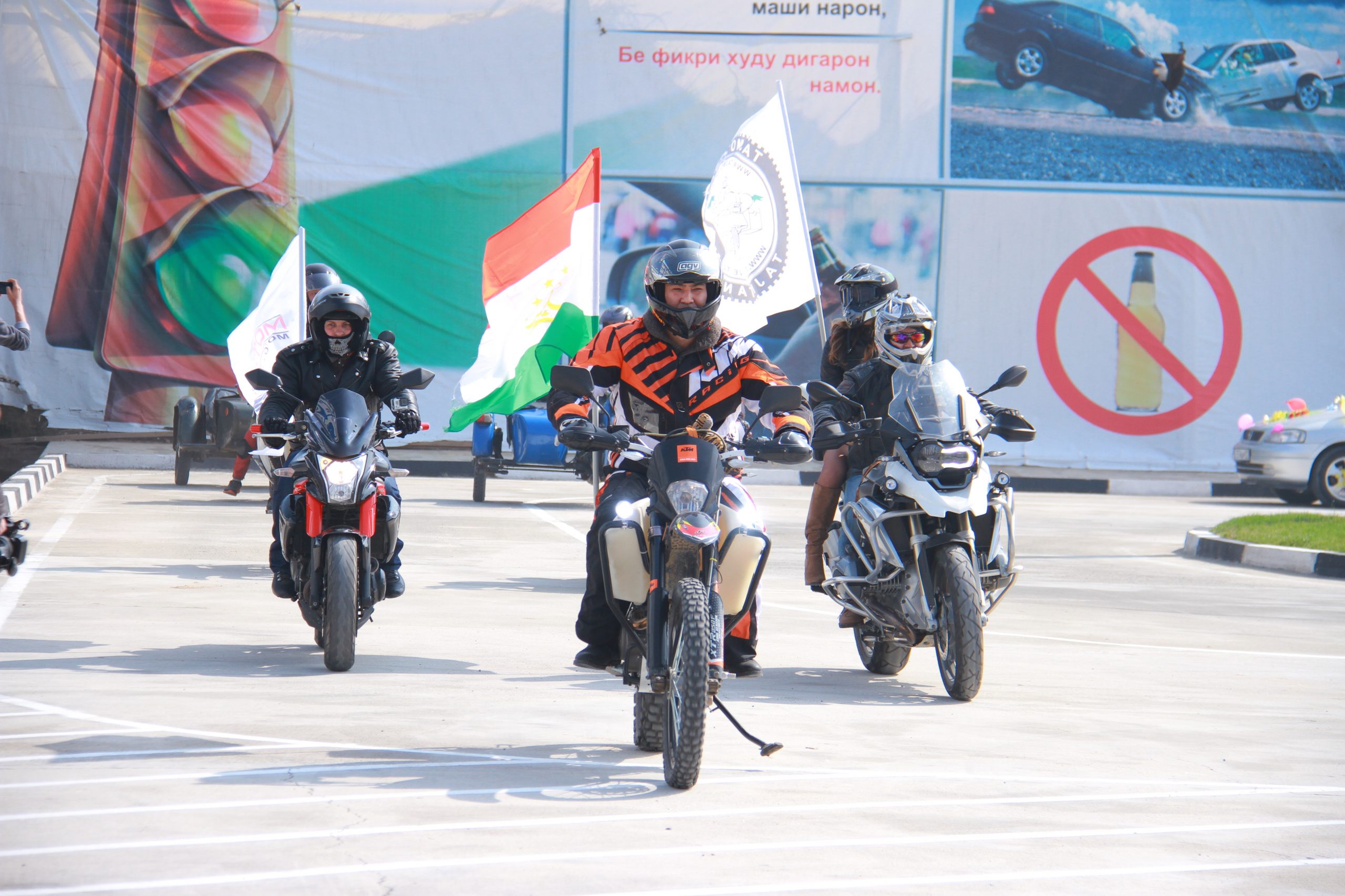К 10 часам все участники были в сборе, получили свои порядковые номера и, выстроившись в колонну, двинулись в сторону нового второго столичного автодрома им. Турсунова, что на 7-ом км, в сопровождении машин ГАИ и ребят-байкеров из группы МОТОЛАЙФ, которые вызвались сопроводить колонну. Ряд машин-участниц проложила путь от комплекса «Наврузгох» в сторону пр. С.Шерози, далее прямо к ул.Айни. Кто-то из участников останавливался и пропускал колонну, наслаждаясь красотой, ну, а те, кто торопились по делам, как обычно продолжали следовать по своему маршруту и порой даже препятствовали движению.