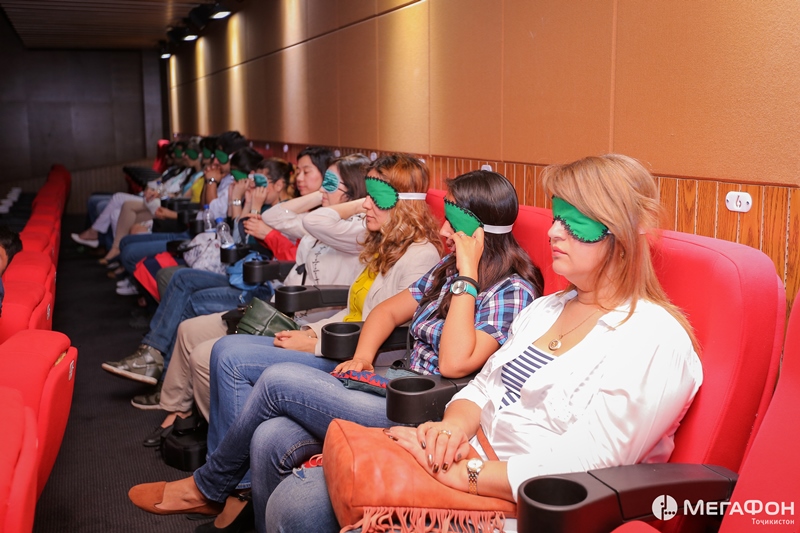 29 апреля в Душанбе состоялся очередной кинопоказ в рамках проекта компании «МегаФон» «Кино без границ». На этот раз в числе зрителей были сотрудники СМИ, которые с повязками на глазах попробовали представить, как люди с нарушениями зрения воспринимают фильмы.