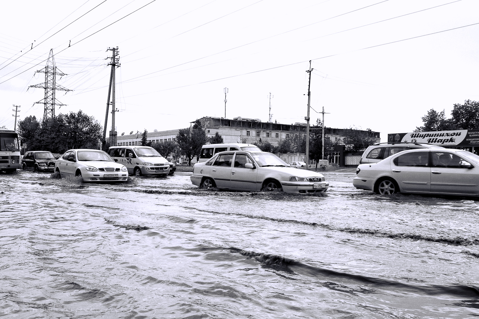 На территории от фабрики «Ширин» до 103 микрорайона после очередного ливня образовалась река. У многих машин стали отваливаться запчасти, так как дорогу не починили и под водой не видно выбоин, которые образовались в результате прошедшей холодной зимы. Эти выбоины местами огромные.