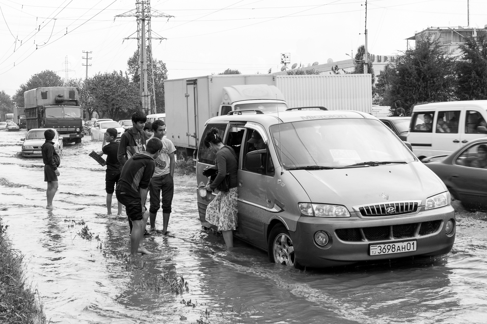Кроме того, у многих автомобилей отваливались номера, а мальчишки ходили по колено в воде между проезжающих, то есть проплывающих машин, и искали эти самые номера.