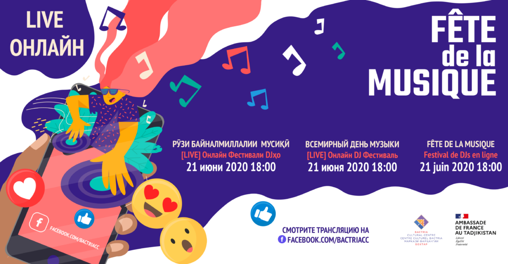 В это воскресенье, 21 июня в 18:00 состоится Всемирный День Музыки — Fête de la Musique впервые в Таджикистане пройдет в диджитал формате.