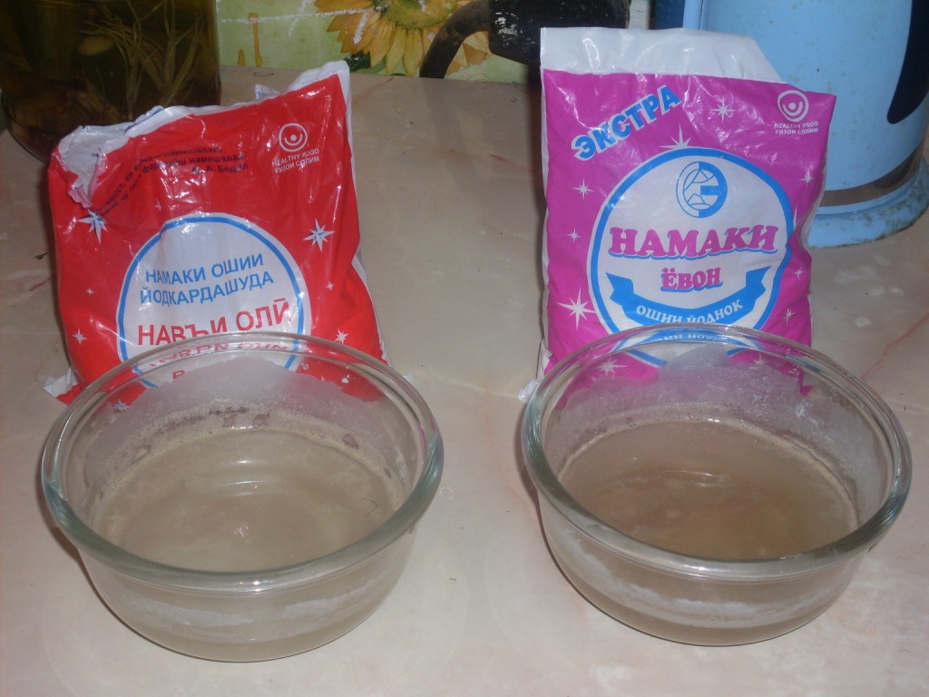Что же это? В нашем случае соль, действительно, превращается в белый яд. На следующий день пытаемся найти в нашем городе соль не отечественного производства и заодно спрашиваем у продавцов, откуда возник дефицит? Все торговцы в один голос говорят, что Яванский завод стоит, соль выпускают какие-то частные фирмы и компании, оттуда и качество выпускаемого продукта. Однако на одной из «наших» упаковок был указан производитель «Намаки Ёвон». Вот как это понимать? Но российской соли на наших прилавках практически нет, её всю раскупили, даже не смотря на то, что в оптовых магазинах 500 гр. соли стоит 8 сомони 70 дирамов, а в супермаркетах около 10 сомони за полкило.