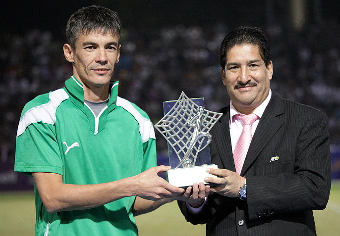 Награду капитану «Истиклола» Дилшоду Восиеву вручил президент Федерации футбола Таджикистана Рустам Эмомали.
