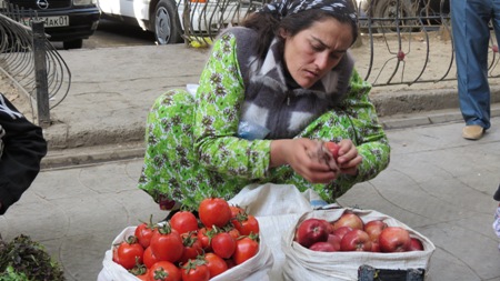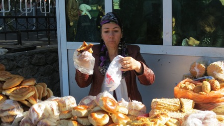 Торговля здесь идёт бойкая, причём с самого утра и до поздней ночи, пока не иссякнет товар. А спектр здешних товаров многогранен. С полу, тележек и из пакетов можно купить хлеб и лепёшки, виноград и яблоки, помидоры, носки, колготки, сладости и многое другое.