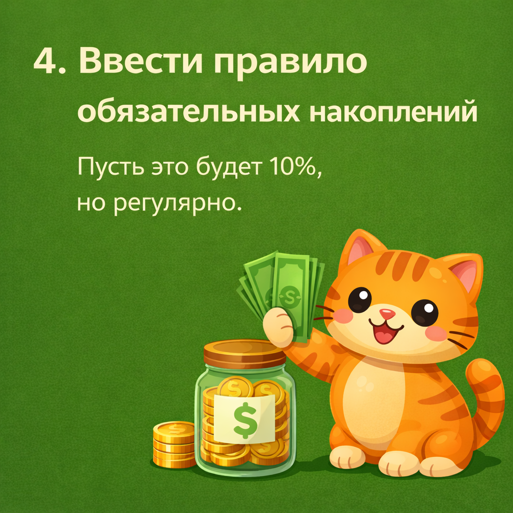 Для успешного накопления денег семье финансовые эксперты рекомендуют внедрить принцип «сначала заплати себе» (откладывать 10–20% дохода сразу при получении), вести учет доходов и расходов, автоматизировать процесс сбережений и создать финансовую «подушку безопасности». Важно использовать накопительные счета, оптимизировать крупные траты, включая покупку сезонных товаров, и вовлекать всех членов семьи.