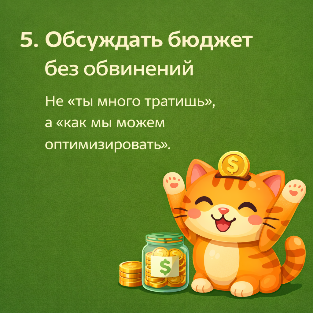 Если решения не обсуждаются совместно, возникает перекос: один партнёр считает себя главным кормильцем, второй — ощущает постоянную нехватку средств. Финансовая грамотность начинается с партнёрства. Бюджет — это общая ответственность, а не разделённые обязанности.