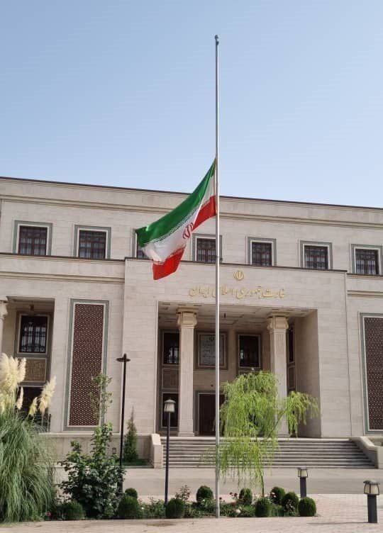 В посольстве Ирана в Душанбе приспущен государственный флаг в связи с гибелью верховного лидера страны Али Хаменеи, а также ряда высокопоставленных военных командиров.
