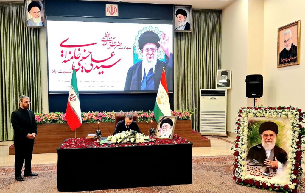 Премьер-министр Таджикистана Кохир Расулзода посетил посольство Исламская Республика Иран в Душанбе, где выразил соболезнования в связи со смертью верховного лидера страны Али Хосейни Хаменеи.