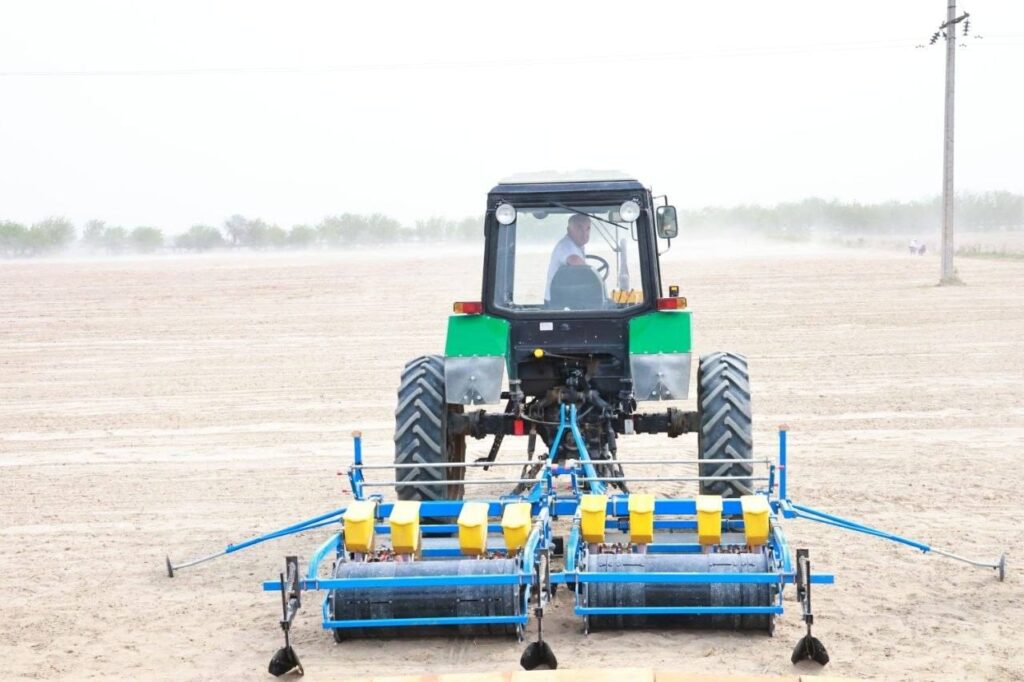 В рамках поездки глава области также принял участие в посевной кампании хлопка в акционерном обществе имени Энаджон Бойматовой.