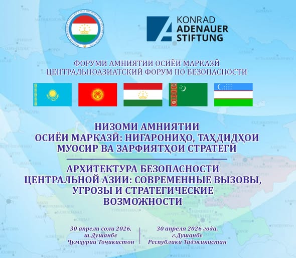 30 апреля в Душанбе состоится Центрально-азиатский форум по безопасности на тему «Архитектура безопасности Центральной Азии: современные вызовы, угрозы и стратегические возможности».