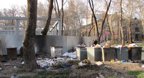 Как всегда, главной столичной достопримечательностью, и это место не исключение, является районная мусорка. Почему-то она расположилась не в глубине или на обочинах парка, а рядом с проезжей частью, как бы в насмешку приглашая своим тлетворным запахом прогуляться в парке.