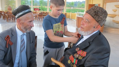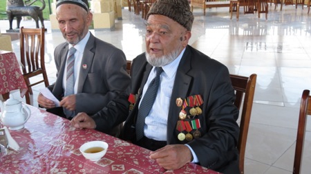 На мероприятие были приглашены несколько ветеранов и участников ВОВ во главе с председателем Совета ветеранов города Душанбе Каримовым Гайбулло Каримовичем. Ветеран войны Шамси Разыков, 1925 года рождения, на фронт ушёл из города Самарканда. Вначале обучался пулемётному делу в Туркмении, затем был отправлен на фронт.  На фронте был ранен в ногу, но повезло. Кость была не задета и, пролежав в госпитале  несколько месяцев, он снова пошёл воевать. Имеет два ордена  Великой Отечественной войны, медали. Ветеран Хусейн Ишонов,  1925 года рождения, награждён орденом ВОВ и медалями за храбрость, он ушёл на фронт из Комсомолабада. Отслужил до конца войны, которую встретил в Кёнисберге водителем в войсках МВД. Имел осколочное ранение в голову, но выжил. Шарофиддин Шарипов —  тоже ветеран войны, он же председатель Совета ветеранов войны и труда района Сино. Воевал, был ранен.